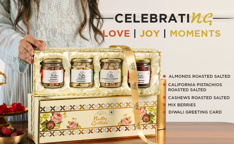 - THOUGHTFUL GIFT OF GOOD HEALTH: Perfect gift for any loved ones. Celebrate the festival of joy by gifting healthy, immunity-boosting, delicious dry fruits - Premium Roasted Salted Almonds, Cashew Nuts, Pistachios, Mix Berries with premium Box