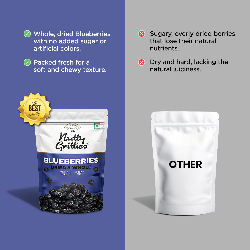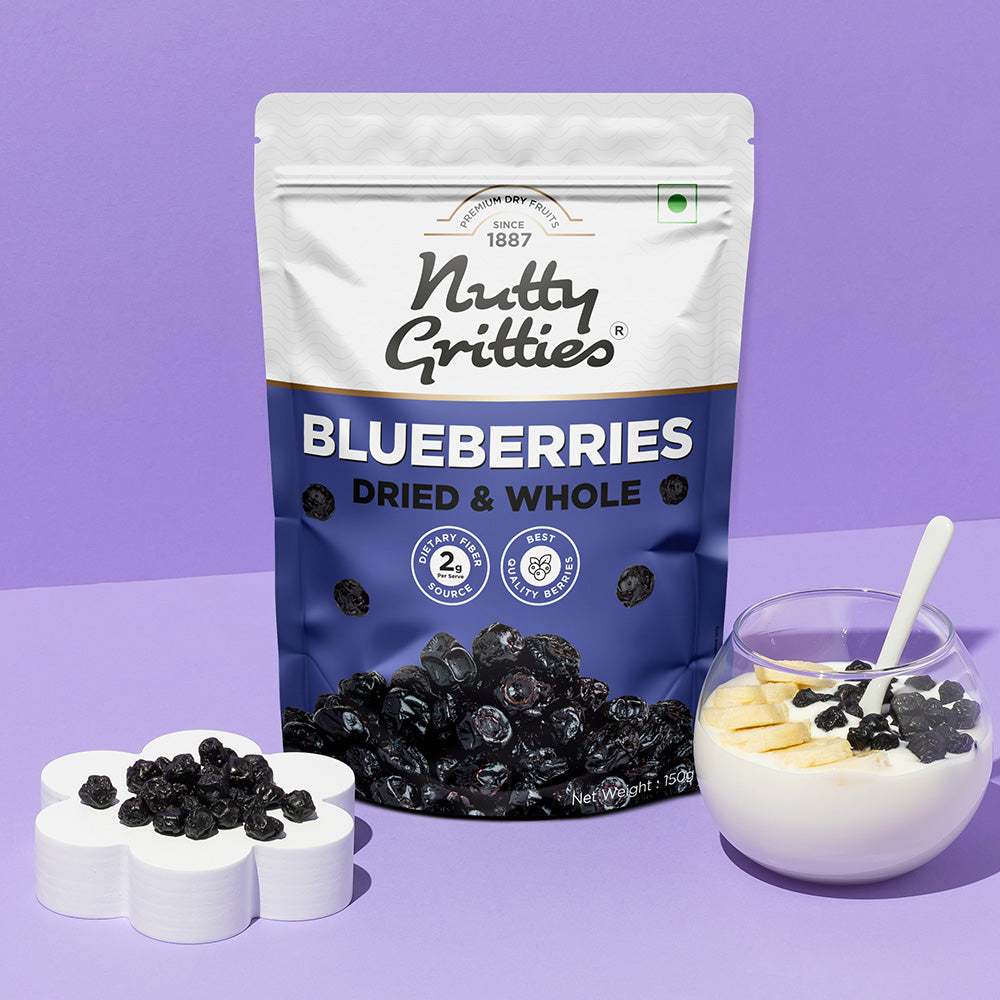 - High in dietary fiber- 3g in 100g Blueberries. Helps to maintain a healthy digestive system