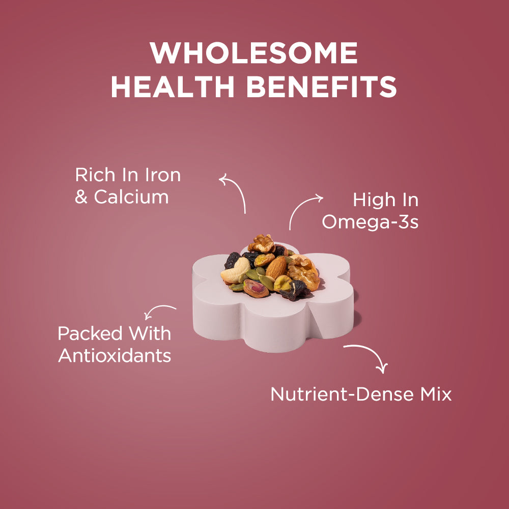 - WOMEN'S HEALTH: Nuts and seeds are great for women's health. They help in relieving menstrual cramp pains, menopause symptoms, are PCOS-friendly and boost the immune system