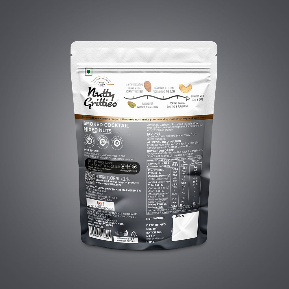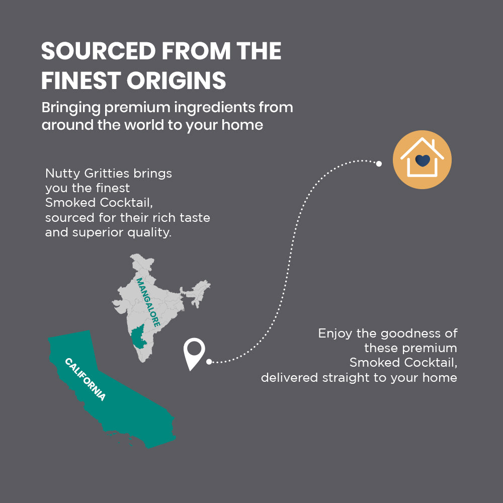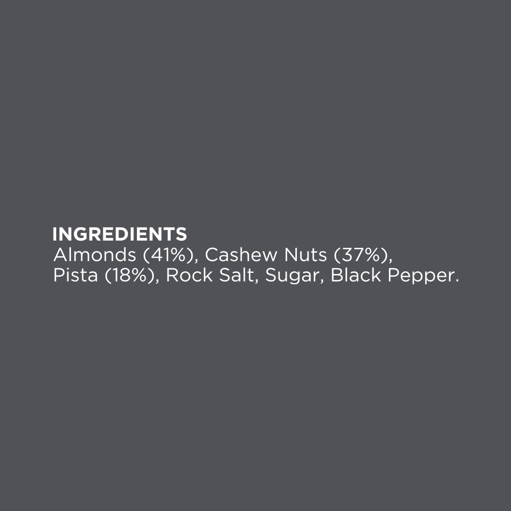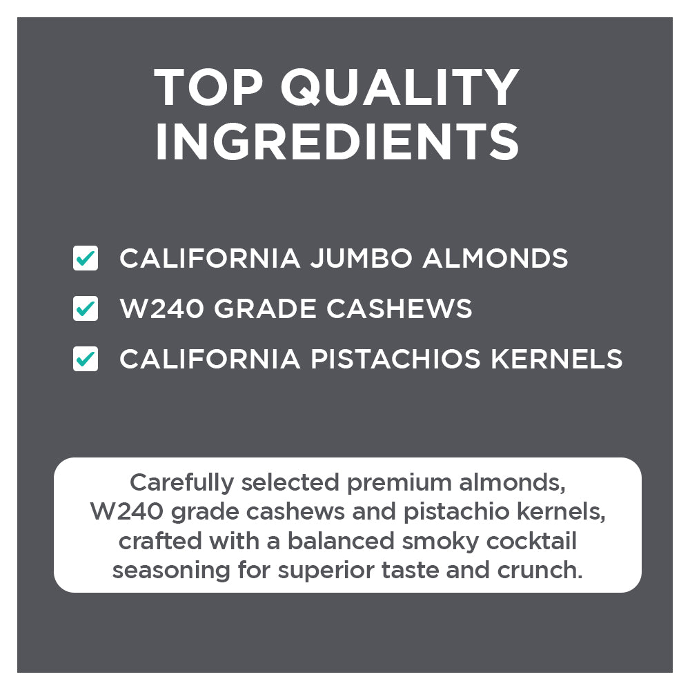- INGREDIENTS: Almonds, Cashews, Pistachio kernels in a delicious Smokey cocktail flavor