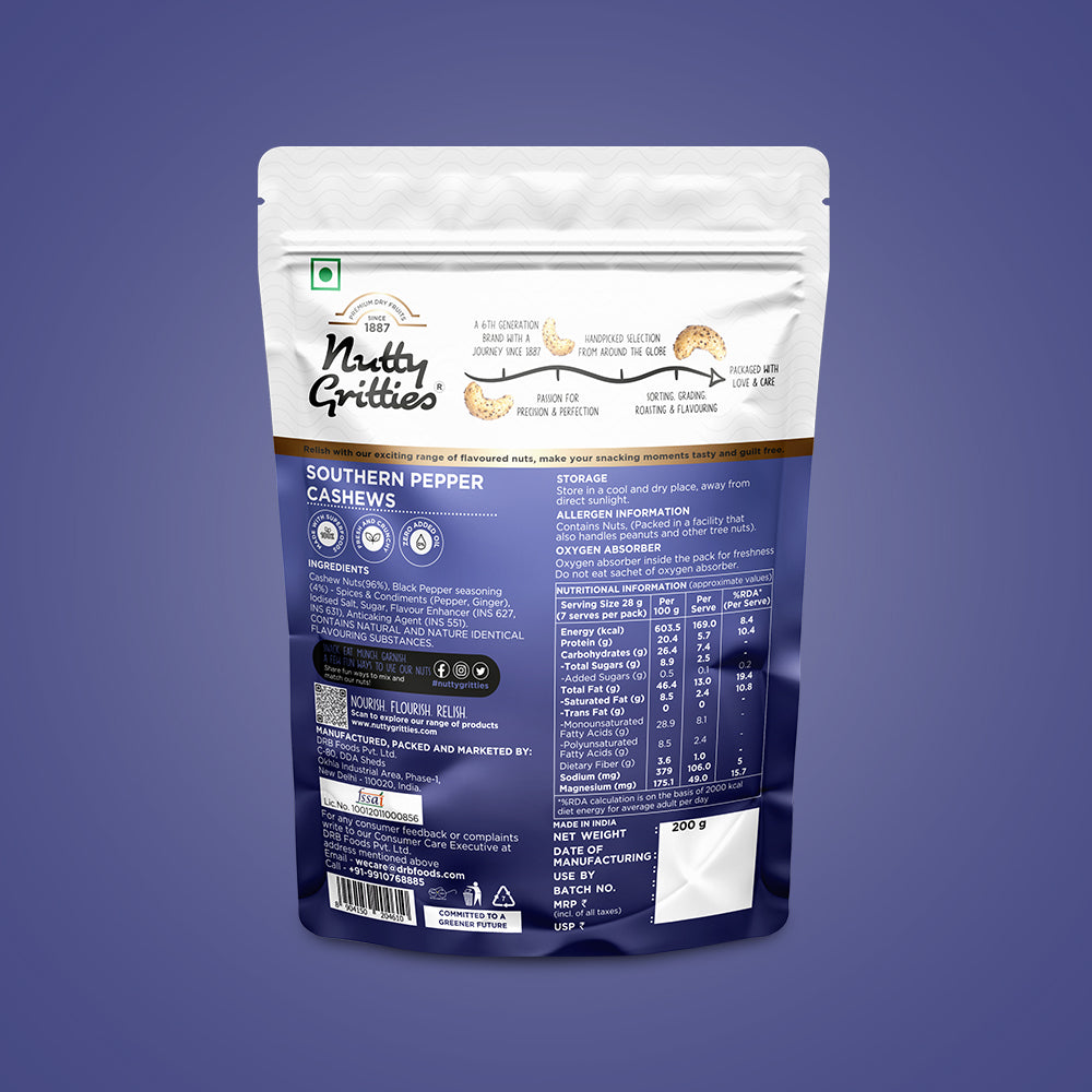 Southern Pepper Cashew Zero Breakage Nuts - 200g