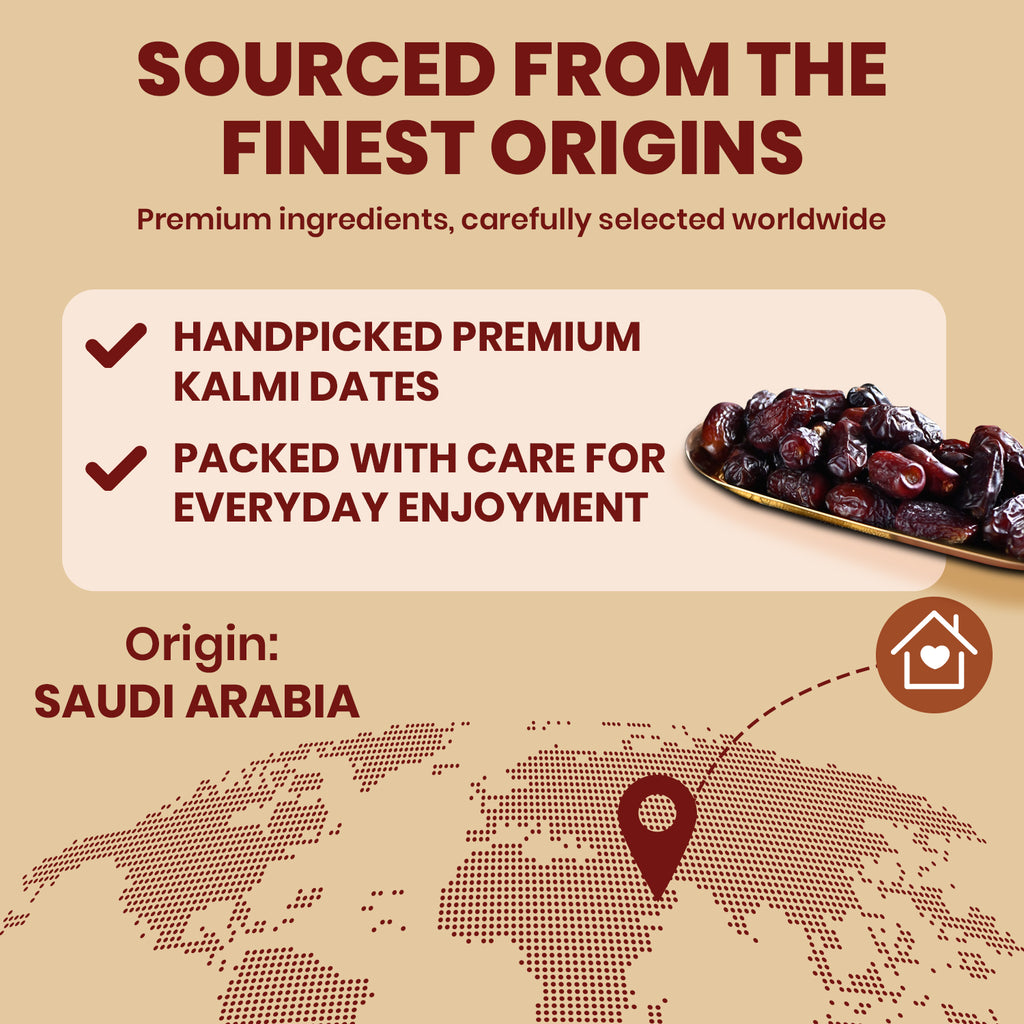 Nutty Gritties Kalmi Dates are carefully sourced from Saudi Arabia and known for their naturally sweet taste, soft bite, and juicy texture. Handpicked for everyday enjoyment, these dates offer clean sweetness and steady energy, making them a smart choice for mindful snacking.