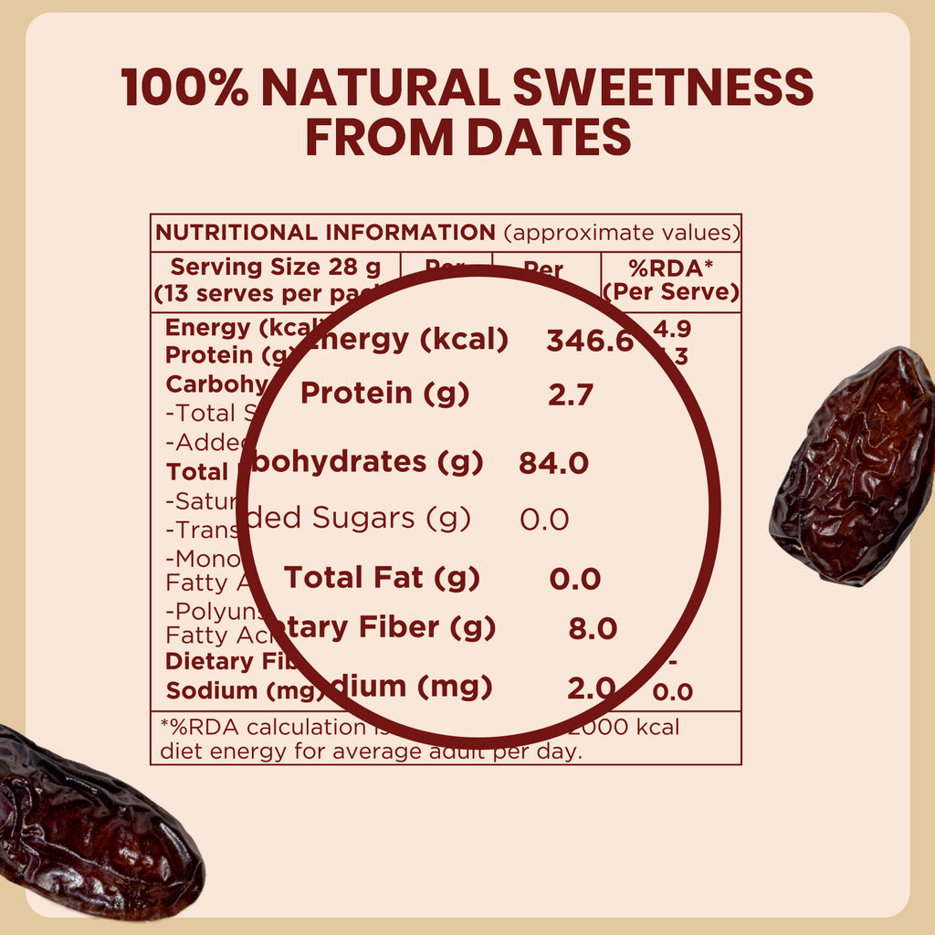 Pure dates with nothing added, keeping your snack simple and wholesome.