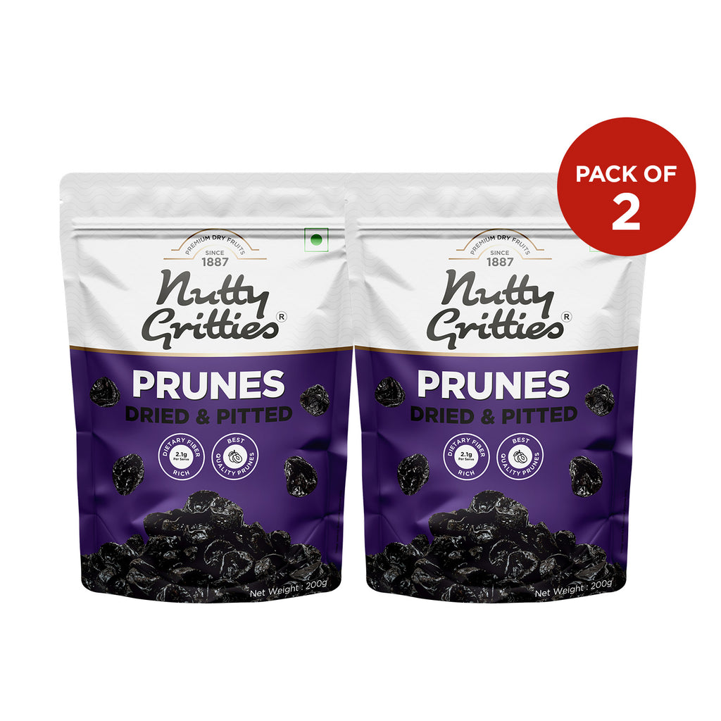- High in Dietary fibre- Helps digestion and relives constipation. 7g fibre in 100g Prunes,